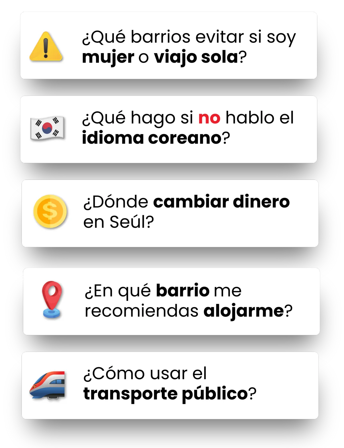 Nuestra guía es la más completa en el mercado, y contiene absolutamente todo lo que necesitas para viajar de manera segura y confiada a Corea.
