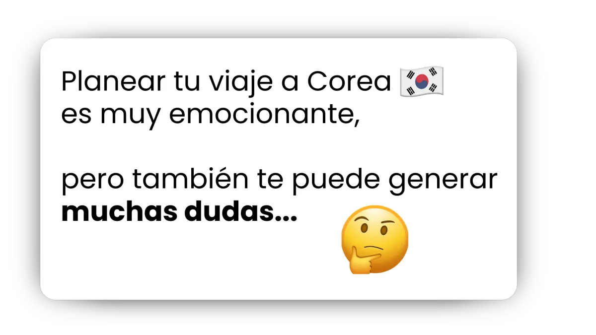 Conocemos los temores que puede que tengas acerca de tu viaje a Corea e hicimos nuestro mejor esfuerzo por incluir toda aquella información que sabemos que te causa dudas y temores.